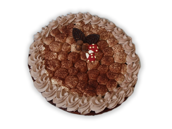 Korstbodem, gevuld met koffiebavarios. Brownie, caramel en hazelnootmousse.